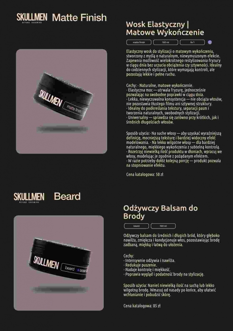SKULL MEN to marka stworzona dla nowoczesnych mężczyzn, którzy poszukują bezkompromisowej jakości w codziennej stylizacji i pielęgnacji. Łącząc klasyczne rzemiosło fryzjerskie z innowacyjnymi formułami, oferujemy produkty, które pozwalają wyrazić siebie – od nienagannej elegancji po surowy, miejski look.
